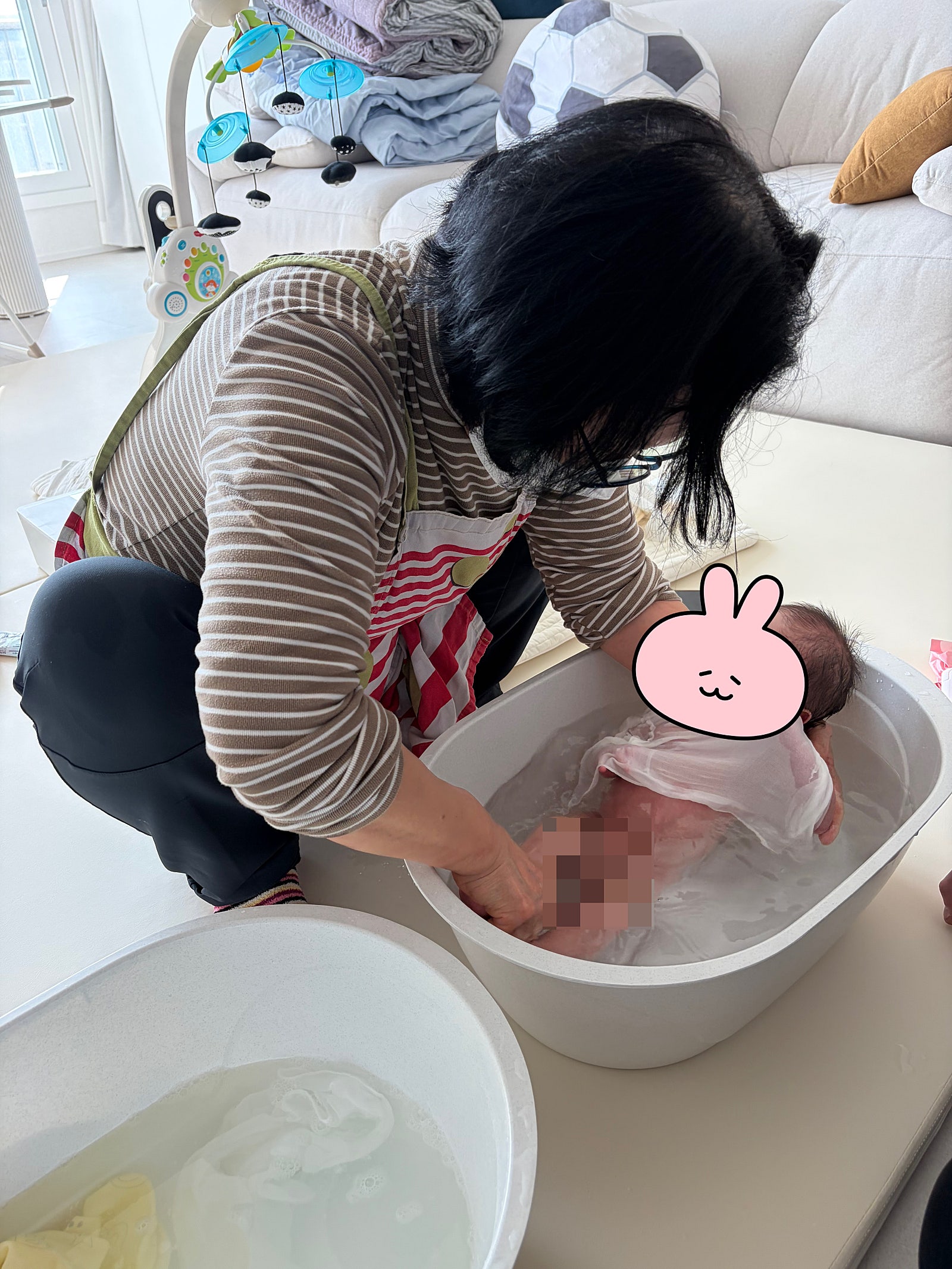 가장 어려웠던 아기 목욕! 제가 목욕시켜줄 때와는 달리 이모님께서 아기를 씻겨줄 때면 저희 아기는 무릉도원에 있는 듯한 표정을 지으며 물을 즐겼네요!